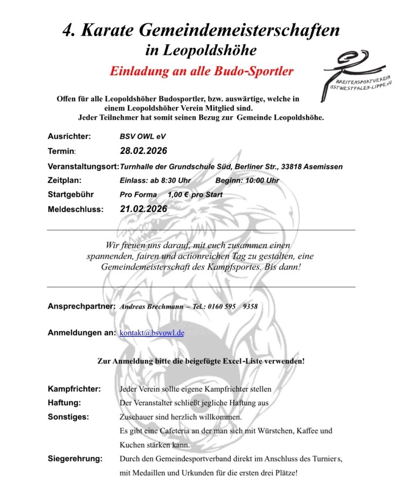 28.02.2026 Karate-Kampfkunst-Gemeindemeisterschaft beim BSV OWL e.V.