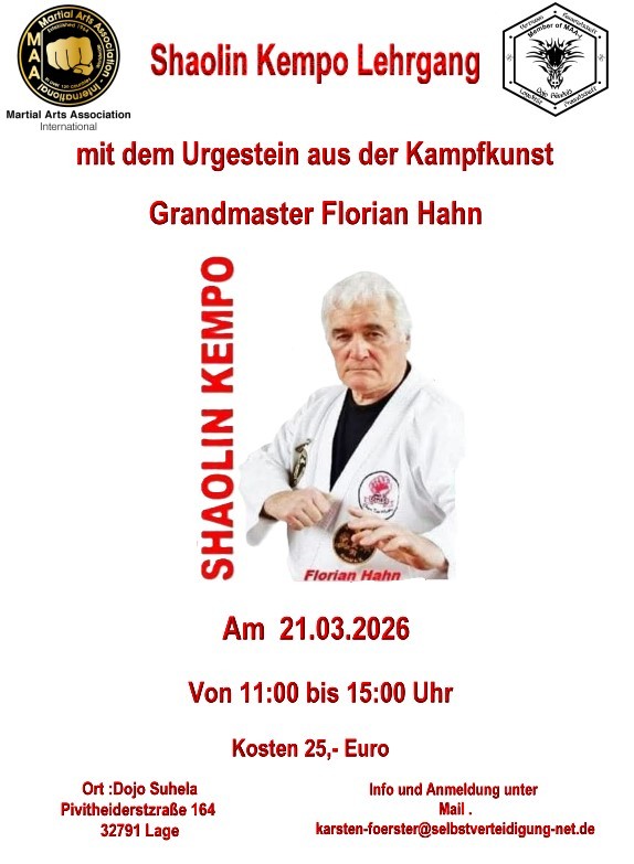 !!! Kempo GM Florian Hahn ist leider aus familiären Gründen verhindert !!!